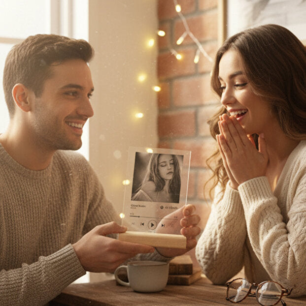 Sevgilime özel bir hediye ararken bu pleksi plak karşıma çıktı. Spotify barkodunu okutunca seçtiğimiz şarkının açılması gerçekten çok hoş bir detay. İsim baskısı net ve pleksi kalitesi oldukça iyi.